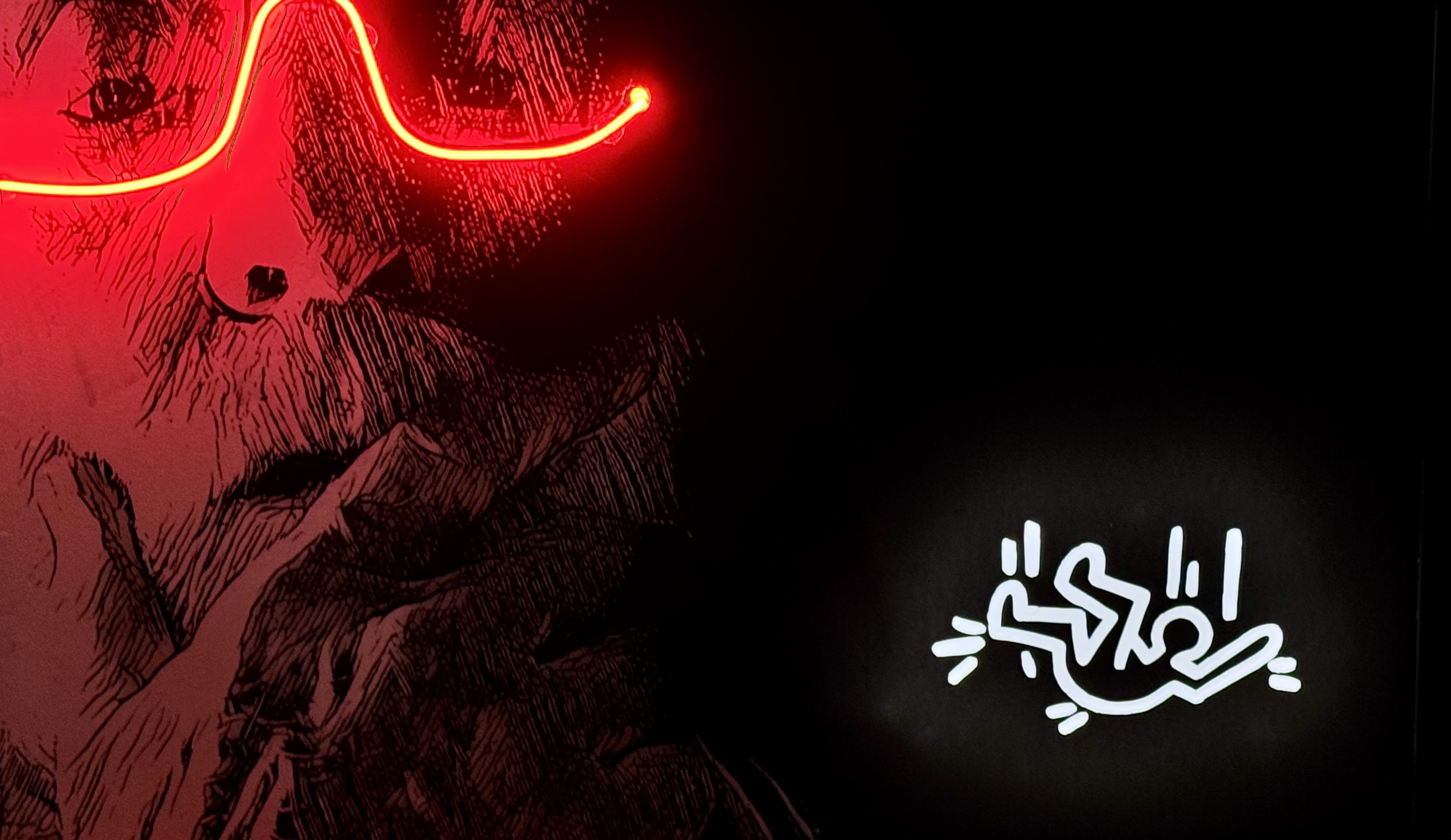 Thanks to my neon instructors, Brett and Rosie, and the other students in the class – Devon and Rick. Your knowledge, skill, patience, and encouragement were exactly what I needed to find this success in me. Thanks, too, go to wood shop champions, Rick, Kyle, and Chris, who taught me how to safely use heavy duty equipment to create a custom frame with sufficient strength and scale to hold the structural components of this work. Then, too, there is my cheer team: Ben, Jonathan, Maya, Sindie, Tim, and Zoriana. Finally, thanks go to Dan for his leadership of Milwaukee Makerspace where community supports the development of skills and humans.